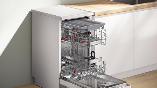 Un altro punto di forza della Bosch SPS4EMI24E è la sua silenziosità. Con un'emissione acustica di soli 44 dB, è talmente discreta che quasi ci si dimentica che sia in funzione. Questo la rende ideale per le cucine a vista o per chi è abituato ad azionarla durante la notte. Il merito è in gran parte del motore EcoSilence Drive, progettato per essere non solo silenzioso, ma anche efficiente e duraturo nel tempo.