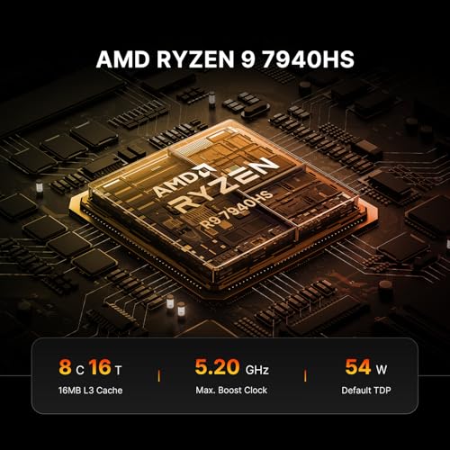 Il vero protagonista di questo Mini PC è, senza dubbio, il processore AMD Ryzen 7. A seconda del modello specifico, possiamo trovare diverse varianti, come il Ryzen 7 7735HS o il 7840HS. Entrambi sono processori pensati per il mondo laptop, il che significa che offrono un eccellente rapporto tra prestazioni e consumo energetico. Con 8 core e 16 thread, questi chip sono dei veri tuttofare.