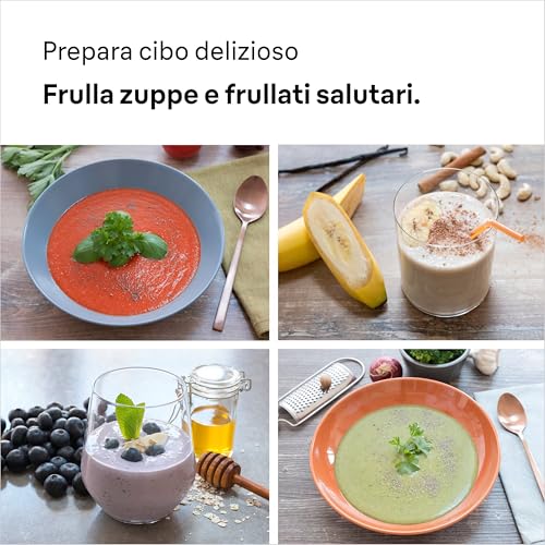 - Asta in acciaio inox: il cuore del minipimer, perfetta per frullare zuppe, vellutate e salse direttamente in pentola, anche quando sono calde.
