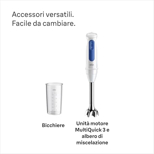 Il Braun MultiQuick 3 MQ30.202M si presenta come un frullatore a immersione pensato per chi cerca un prodotto pratico, efficiente e completo. Non è un modello base, ma un set ricco di accessori che promette di svolgere molteplici funzioni: frullare, tritare, montare e sminuzzare. Grazie alla rinomata qualità tedesca del marchio Braun, questo minipimer è costruito per durare e per diventare un compagno insostituibile nelle avventure culinarie di ogni giorno.