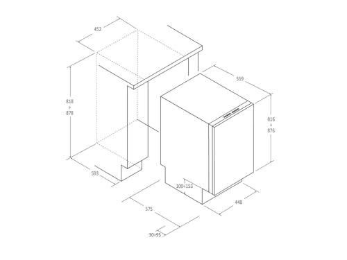 Il pannello comandi è a scomparsa, integrato nella parte superiore dello sportello, e presenta un display LED semplice ed intuitivo. Questa scelta contribuisce a un'estetica pulita e minimale, permettendo alla lavastoviglie di integrarsi perfettamente con il design di qualsiasi cucina. La struttura interna, sebbene compatta, è studiata per ottimizzare lo spazio, anche se ovviamente non può competere con la flessibilità di carico dei modelli standard da 60 cm.