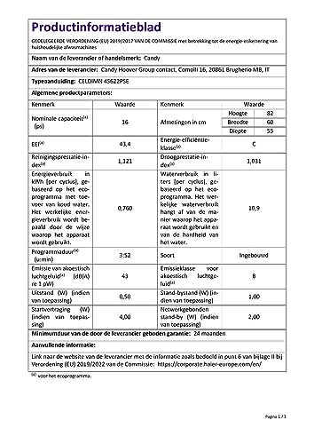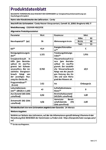 Con una classe di efficienza energetica C (secondo la nuova etichettatura), questa lavastoviglie si posiziona in una fascia media per quanto riguarda i consumi. Il consumo d'acqua per ciclo è di circa 10,9 litri, un valore buono per una 16 coperti. Un aspetto molto apprezzato è la funzione di apertura automatica della porta a fine ciclo, che non solo migliora l'asciugatura in modo naturale, ma contribuisce anche a ridurre i consumi energetici.