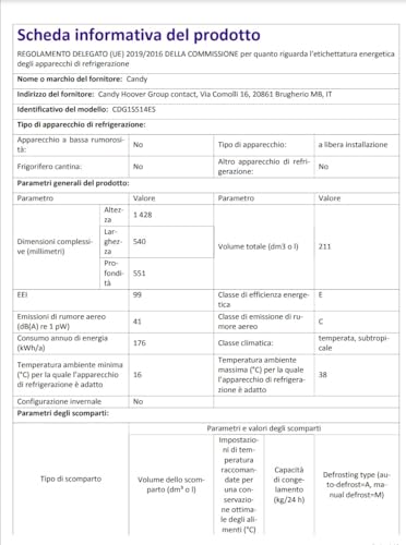 In conclusione, il Candy Double Door CDG1S514ES è un frigorifero che mantiene ciò che promette: essenzialità, compattezza e funzionalità a un prezzo accessibile. È la scelta ideale per chi cerca una soluzione pratica e senza fronzoli, perfetta per piccoli appartamenti, seconde case o come frigorifero supplementare. Se le vostre priorità sono le dimensioni contenute, la facilità d'uso e un budget limitato, allora questo modello Candy potrebbe fare al caso vostro. Se invece cercate tecnologie avanzate come il No Frost, un'alta efficienza energetica o una maggiore capacità, dovrete orientarvi su prodotti di fascia differente.