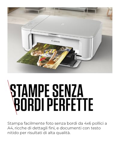 Dove la MG3650S sorprende positivamente è nella stampa fotografica. Grazie a una risoluzione massima di 4800 x 1200 dpi e alla tecnologia delle cartucce FINE di Canon, le foto stampate su carta dedicata risultano ricche di dettagli e con colori vividi. Supporta anche la stampa di foto senza bordi fino al formato A4, una caratteristica non scontata in questa fascia di mercato. Una foto 10x15 cm viene stampata in circa 44 secondi.