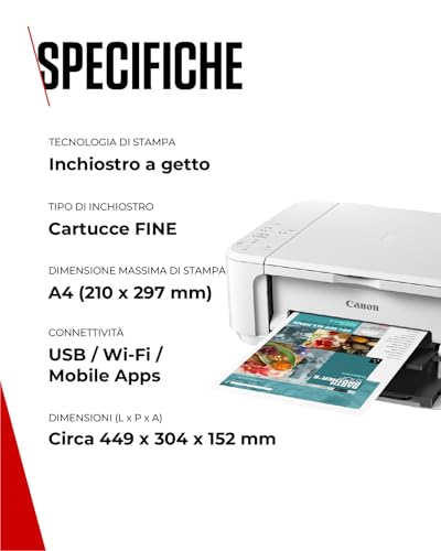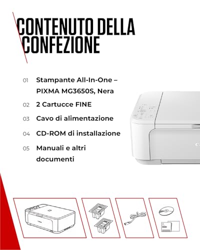 Questo modello è, a tutti gli effetti, un aggiornamento software del precedente MG3650, mantenendo invariate le caratteristiche tecniche. Si presenta con un design compatto e sobrio, disponibile in diverse colorazioni (nero, bianco e rosso) per adattarsi a vari stili di arredamento. Le sue dimensioni sono di circa 449 x 304 x 152 mm e il peso si attesta sui 5,4 kg, rendendola facile da collocare anche in spazi ridotti.