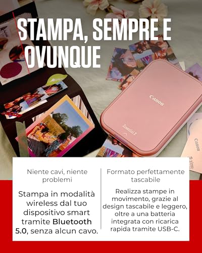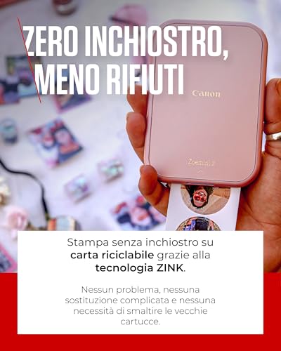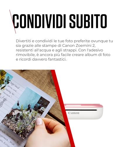 La Canon Zoemini 2 si presenta come la soluzione ideale per chi vuole stampare le proprie foto preferite direttamente dallo smartphone, in qualsiasi momento e luogo. Immagina di essere a una festa, scattare una foto di gruppo e poterla subito stampare e regalare ai tuoi amici. Ecco, la Zoemini 2 nasce proprio per questo: trasformare i momenti digitali in ricordi tangibili e condivisibili istantaneamente.