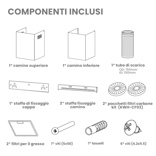 Questo modello è disponibile in due varianti dimensionali principali, da 60 cm e da 90 cm, per potersi adattare a piani cottura di diverse grandezze. Entrambe le versioni condividono le stesse caratteristiche tecniche di punta, quindi la scelta dipenderà esclusivamente dallo spazio a disposizione e dalla larghezza dei vostri fornelli.