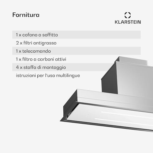 Un aspetto che considero cruciale nella scelta di una cappa è la facilità di manutenzione. Questo modello Klarstein è equipaggiato con un filtro antigrasso in alluminio, facilmente rimovibile e lavabile in lavastoviglie. Questa caratteristica è una vera manna dal cielo! Dimenticatevi i vecchi filtri in tessuto da sostituire periodicamente. Qui basta sganciare il filtro, metterlo in lavastoviglie e il gioco è fatto. Questo non solo garantisce una pulizia profonda e igienica, ma assicura anche che la cappa mantenga la sua efficienza nel tempo, evitando che l'accumulo di grasso possa comprometterne le prestazioni e aumentare il rischio di incendi.