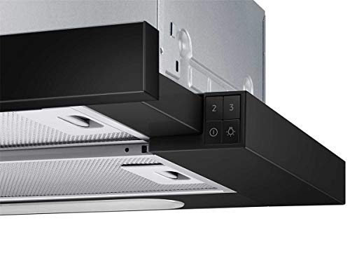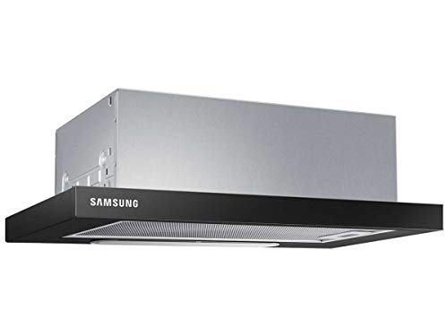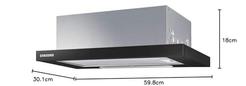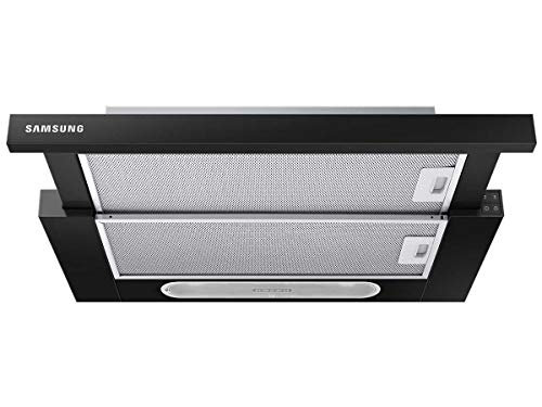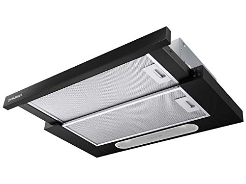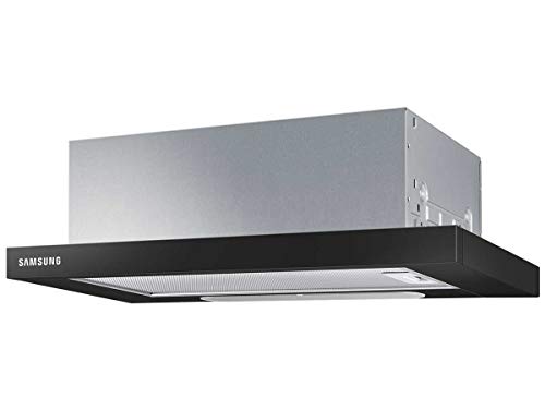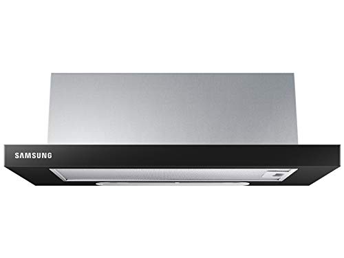 La cappa aspirante Samsung NK24M1030IB/UR si presenta con un design a incasso di tipo telescopico o a scomparsa, pensato per integrarsi con discrezione all'interno dei pensili della cucina. Con i suoi 60 cm di larghezza, è la soluzione ideale per chi cerca un elettrodomestico funzionale ma non invasivo, capace di mantenere una linea pulita ed elegante nell'arredamento. Il colore nero e i materiali, principalmente acciaio inox, conferiscono un tocco di modernità.