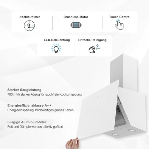 La prima cosa che salta all'occhio della cappa aspirante sndoas da 60cm è senza dubbio il suo design. La finitura, disponibile in diverse colorazioni come il nero o il bianco, e il pannello in vetro inclinato le conferiscono un aspetto elegante e contemporaneo, capace di integrarsi alla perfezione nelle cucine moderne. A differenza delle classiche cappe a parallelepipedo, il suo profilo spiovente non solo è esteticamente piacevole, ma offre anche un vantaggio pratico: maggiore spazio per la testa sopra il piano cottura, evitando urti accidentali.