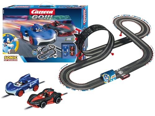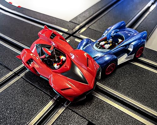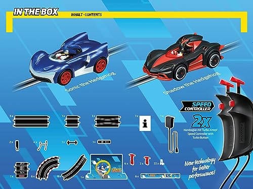 La pista Carrera GO!!! Sonic the Hedgehog (codice 20062566) non è un semplice giocattolo, ma un vero e proprio portale che trasporta l'adrenalina e il divertimento del celebre videogioco SEGA direttamente nella cameretta. Con una lunghezza di quasi cinque metri, questo circuito promette sfide avvincenti e ore di divertimento. La confezione include tutto il necessario per iniziare a gareggiare fin da subito: i due protagonisti, Sonic sulla sua "Speed Star" e il suo rivale di sempre, Shadow, al volante del "Dark Reaper", due controller manuali e, ovviamente, tutti i pezzi per assemblare il tracciato.
