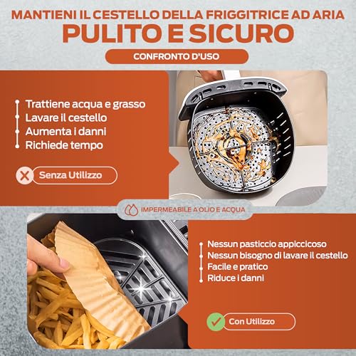 L'idea è tanto semplice quanto geniale: un foglio di carta sagomato che si posiziona all'interno del cestello, creando una barriera protettiva tra il cibo e la superficie della friggitrice. Niente più cibo che si attacca e niente più grasso che cola ovunque. Una volta terminata la cottura, basta sollevare il foglio e gettarlo via. Il risultato? Un cestello praticamente pulito e pronto per la prossima ricetta. Ma funziona davvero così bene?