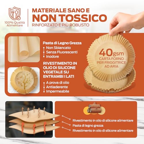 - Rettangolare (22-14 cm): la soluzione specifica per le popolarissime friggitrici ad aria a doppio cassetto (dual zone), che permette di usare un foglio per ogni scomparto.