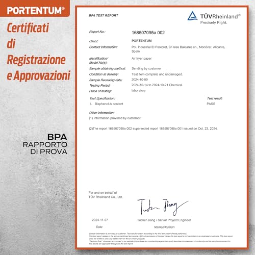La carta forno per friggitrice ad aria PORTENTUM è un accessorio che, una volta provato, difficilmente si abbandona. Non è un prodotto esente da piccoli compromessi, come la potenziale leggera riduzione della croccantezza per alcuni alimenti, ma i vantaggi in termini di praticità e pulizia sono innegabili. La vasta gamma di formati la rende adatta a quasi ogni modello in commercio e le certificazioni di sicurezza offrono la tranquillità necessaria quando si cucina per sé e per la propria famiglia. Se odiate strofinare il cestello della vostra friggitrice e cercate una soluzione "usa e getta" comoda e igienica, la carta forno PORTENTUM è un acquisto assolutamente consigliato che vi semplificherà la vita in cucina.