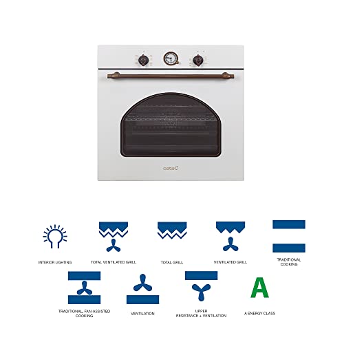 Il primo impatto con il forno elettrico da incasso CATA MRA 7108 WH è senza dubbio di grande effetto. Il suo design marcatamente rustico, con finiture in cristallo bianco e dettagli che richiamano le cucine di una volta, lo rende un pezzo d'arredamento capace di donare calore e personalità a qualsiasi ambiente. Le manopole e l'orologio analogico sono un tocco di classe che conquista gli amanti dello stile country e shabby chic.