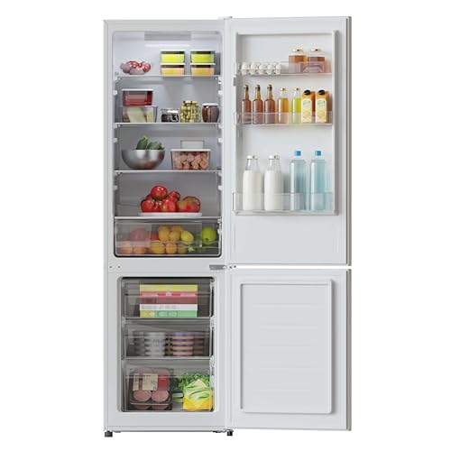 All'interno, la capacità di 262 litri è suddivisa in modo intelligente: circa 175-187 litri per il vano frigorifero e 75-87 litri per il vano congelatore. Il frigorifero è dotato di ripiani in vetro resistenti e facili da pulire, oltre a un cassetto dedicato a frutta e verdura per mantenerne la freschezza più a lungo. L'illuminazione interna è affidata a una luce LED, che garantisce un'ottima visibilità in ogni angolo consumando meno energia rispetto alle tradizionali lampadine.