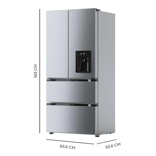 Il primo impatto con il Cecotec Bolero CoolMarket FD 510 è senza dubbio notevole. Con i suoi 183 cm di altezza e 84 cm di larghezza, si impone come un protagonista in cucina. Il design a 4 porte, conosciuto come "French Door", non è solo una scelta estetica di tendenza, ma offre anche vantaggi pratici. L'apertura a zone, con due porte per il vano frigo e due cassettoni per il congelatore, permette di accedere solo alla sezione desiderata, limitando la dispersione del freddo e contribuendo al risparmio energetico.