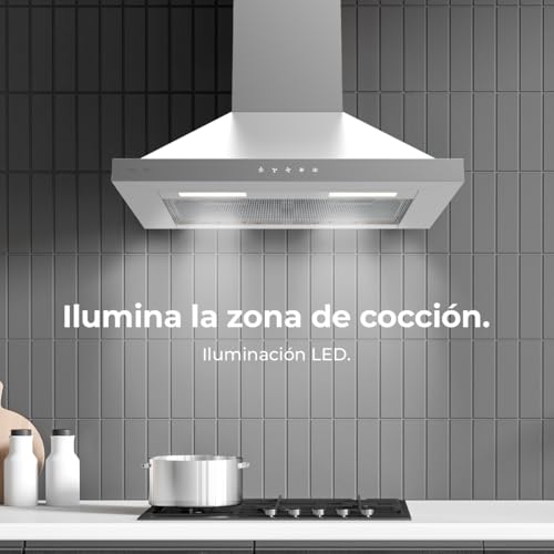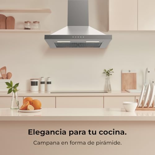 La cappa aspirante Cecotec Bolero Flux PT 604000 si presenta con un design a piramide classico e intramontabile, capace di integrarsi con discrezione ed eleganza in quasi ogni tipo di cucina moderna. La sua finitura in acciaio inossidabile non solo le conferisce un aspetto professionale e pulito, ma promette anche durabilità e, soprattutto, una notevole facilità di pulizia, un aspetto da non sottovalutare nell'uso quotidiano. Con una larghezza di 60 cm, si adatta perfettamente agli spazi standard sopra i piani cottura.