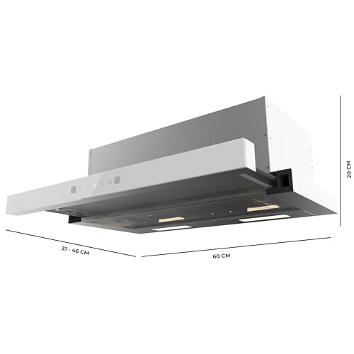 La linea di cappe aspiranti Cecotec Bolero Flux TLT si presenta con un design decisamente moderno e pensato per le cucine contemporanee. La sua natura telescopica o a incasso permette un'integrazione quasi invisibile all'interno dei pensili della cucina. Questa caratteristica è un grande vantaggio per chi cerca di ottimizzare lo spazio e mantenere una linea estetica pulita e minimale, senza l'ingombro di una cappa a vista tradizionale.
