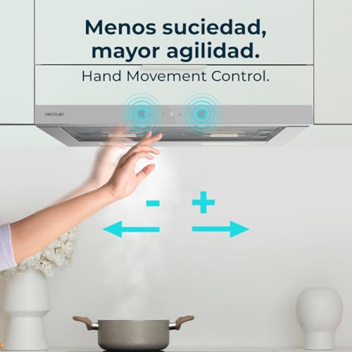 Cecotec ha puntato molto sull'innovazione anche per quanto riguarda l'interfaccia utente. I modelli di questa serie sono dotati di un moderno pannello di controllo SS Touch Control, che permette una gestione intuitiva e precisa delle funzioni. La vera chicca, però, presente su alcune varianti come la Glass White, è il Controllo tramite Movimento (Hand Movement Control). Questa funzione consente di accendere, spegnere e regolare la velocità della cappa semplicemente con un gesto della mano, senza bisogno di toccare fisicamente la superficie. Un dettaglio non da poco, che si rivela estremamente pratico quando si hanno le mani sporche o unte.