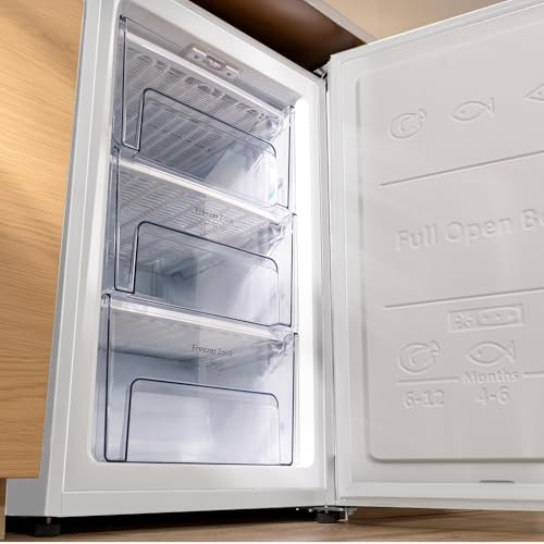Con i suoi 97 litri di capacità lorda, questo congelatore offre uno spazio interno ben organizzato, suddiviso in tre cassetti indipendenti. Questa soluzione è decisamente pratica perché permette di separare le diverse tipologie di alimenti (carne, pesce, verdure, gelati) e di trovarli più facilmente, senza dover "scavare" come nei congelatori a pozzo. I cassetti sono realizzati in plastica trasparente, il che aiuta a vedere il contenuto a colpo d'occhio.