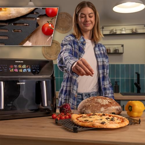 Ma non è solo una friggitrice ad aria. Come suggerisce il nome, la Cecofry&Grill Duoheat 10000 integra anche una vera e propria funzione grill. In dotazione troviamo una pesante griglia in alluminio con rivestimento antiaderente, pensata per sigillare la carne all'esterno e lasciarla succosa all'interno, creando le classiche e appetitose strisce da grigliata. Una versatilità 3 in 1 (friggitrice, grill e piastra) che la rende un apparecchio multifunzione capace di sostituire diversi elettrodomestici in cucina.