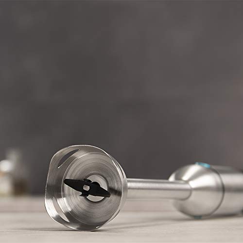 Un'altra caratteristica distintiva è il piede XL extra-lungo. Questa scelta progettuale si rivela estremamente comoda, perché permette di lavorare direttamente in pentole alte o contenitori capienti, riducendo la necessità di trasferire i composti e sporcare altri utensili. Inoltre, la campana ha un design anti-schizzi che funziona egregiamente, mantenendo la cucina più pulita durante la lavorazione.