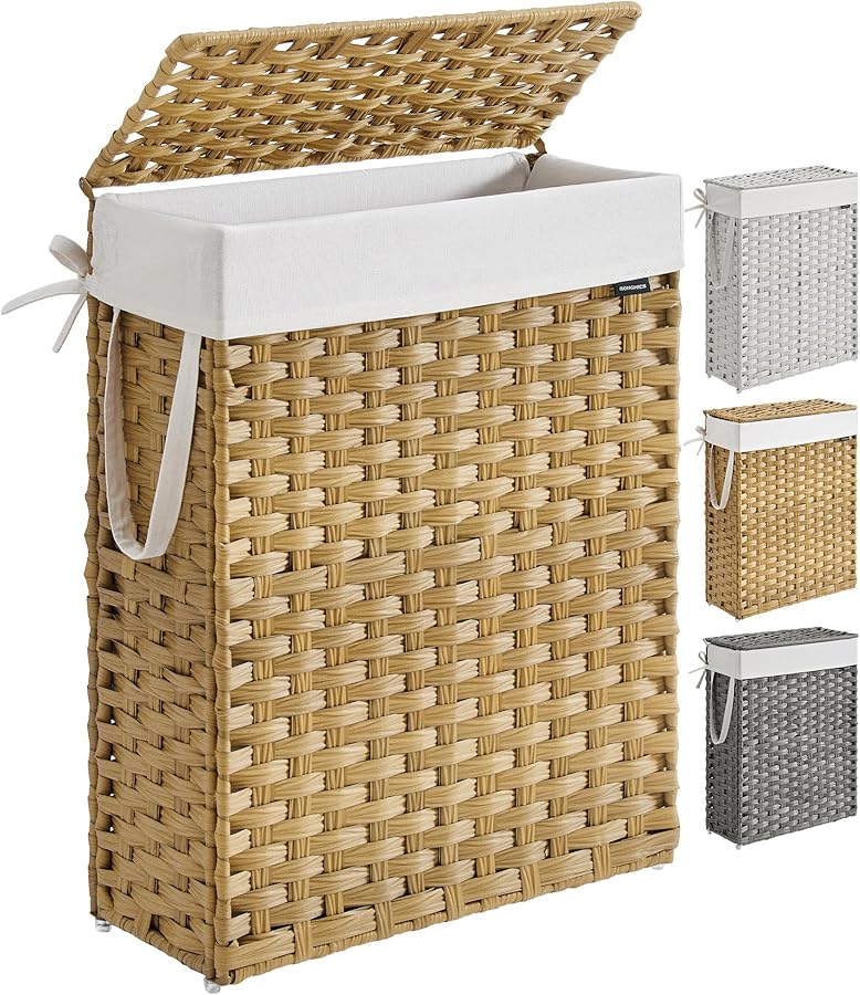 La cesta portabiancheria SONGMICS si distingue nettamente dai classici cesti in plastica. Il rivestimento esterno, disponibile in varie finiture come il bambù naturale o un tessuto effetto lino in diversi colori (grigio, bianco, ecc.), conferisce un aspetto moderno ed elegante. Questo permette di posizionare la cesta non solo in lavanderia, ma anche a vista in bagno o in camera da letto, integrandola perfettamente con l'arredamento esistente.