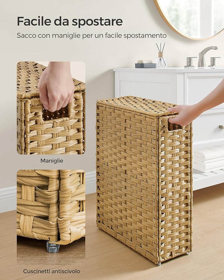 Al di là dell'aspetto estetico, la vera prova del nove per un cesto portabiancheria è la sua funzionalità nell'uso di tutti i giorni. E qui, il prodotto di SONGMICS non delude. La caratteristica più apprezzata è senza dubbio il sacco interno in tessuto, rimovibile e lavabile. Questo sacco, solitamente in cotone o tessuto misto, si aggancia alla struttura e può essere sfilato con estrema facilità grazie ai manici. Dire addio al trasporto dell'intero cesto fino alla lavatrice è una vera comodità : basta estrarre il sacco e portarlo con sé.