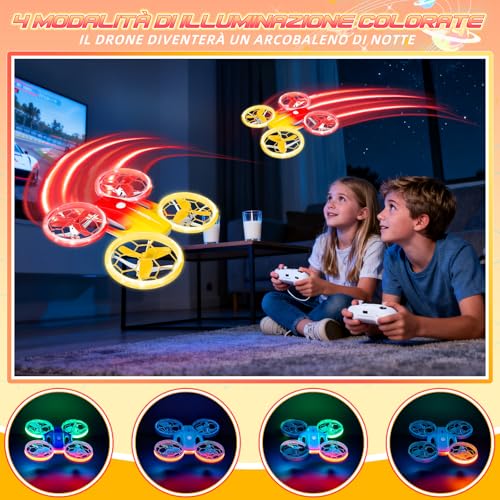 Ma il vero spettacolo inizia quando si esplorano le funzioni extra. Con la pressione di un solo pulsante, il drone può eseguire delle fantastiche capriole a 360° (3D Flips), una mossa acrobatica che lascia sempre a bocca aperta i bambini. A questo si aggiungono i 4 diversi effetti di luci a LED, che non solo rendono il drone più visibile, ma trasformano i voli serali in un vero e proprio show luminoso. Queste caratteristiche aggiungono un enorme valore ludico al prodotto, andando oltre il semplice volo.