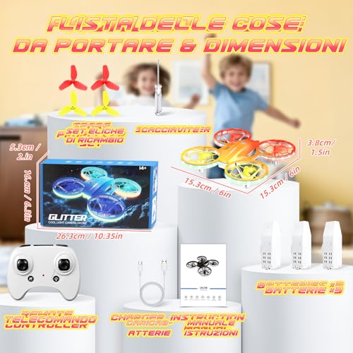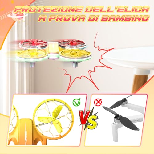 Appena aperta la confezione del Charmofun Mini Drone Giocattolo per Bambini, si capisce subito di avere tra le mani un prodotto pensato per i più piccoli. Il drone è compatto, leggero e, cosa fondamentale, dotato di paraeliche integrate che proteggono sia le piccole pale rotanti sia le dita curiose dei bambini (e i mobili di casa!). La sensazione al tatto è quella di una plastica robusta, progettata per resistere agli inevitabili urti dei primi voli.