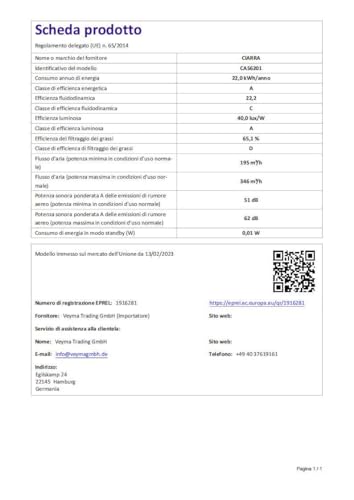 La linea di cappe aspiranti da parete CIARRA rappresenta una soluzione solida e affidabile per chi cerca un prodotto funzionale, dal design moderno e con un buon rapporto qualità-prezzo. La potenza di 370 m³/h è adeguata per la maggior parte delle cucine domestiche di dimensioni contenute, mentre la doppia modalità di installazione offre una flessibilità preziosa. L'efficienza energetica di classe A e l'illuminazione a LED sono plus importanti che incidono positivamente sui costi di gestione. Sebbene non sia la cappa più silenziosa sul mercato, il suo livello di rumorosità è accettabile per l'uso quotidiano. È una scelta consigliata a chi non necessita di prestazioni professionali ma desidera un elettrodomestico efficiente, versatile e gradevole alla vista.
