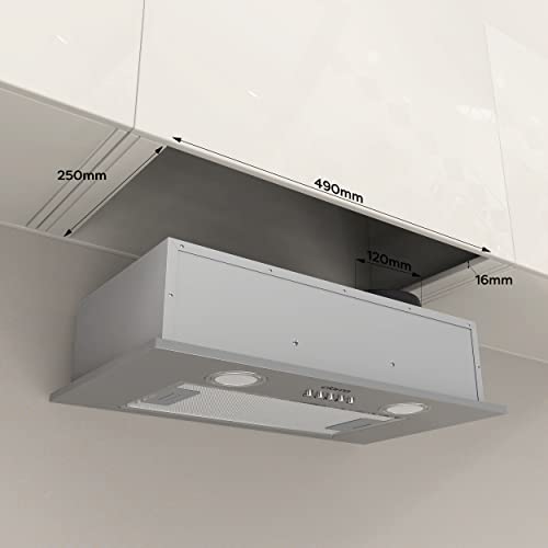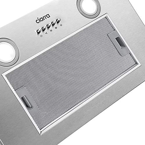 Uno degli aspetti più apprezzati della CIARRA CBCS5913A è senza dubbio il suo design. Realizzata in acciaio inox, questa cappa da 52 cm è pensata per essere "a scomparsa", ovvero per integrarsi perfettamente all'interno di un pensile della cucina. Con le sue dimensioni compatte (52 x 28 x 13 cm), diventa praticamente invisibile, mantenendo le linee pulite ed eleganti della tua cucina. Questa caratteristica la rende ideale per chi non ama gli elettrodomestici a vista e preferisce uno stile minimalista e ordinato.