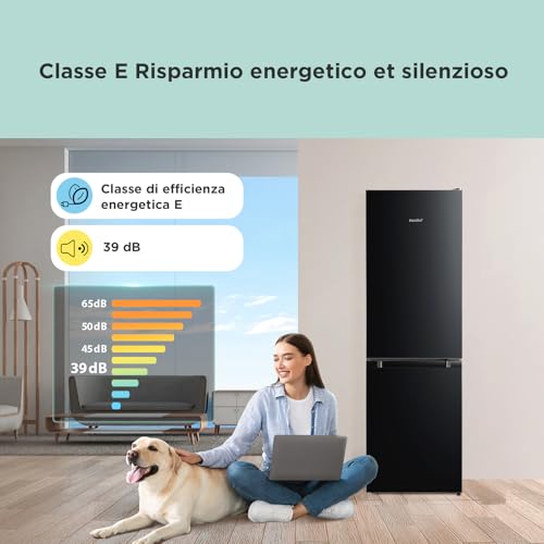 Un altro punto di forza è la sua bassa rumorosità. Con un'emissione sonora di soli 39 dB, questo frigorifero è estremamente silenzioso, quasi impercettibile. Questa caratteristica lo rende perfetto per le cucine a vista o per i monolocali, dove il rumore degli elettrodomestici può diventare fastidioso. Il controllo della temperatura è manuale e facilmente regolabile tramite una manopola interna, permettendo di impostare il livello di freddo ideale per i tuoi alimenti.