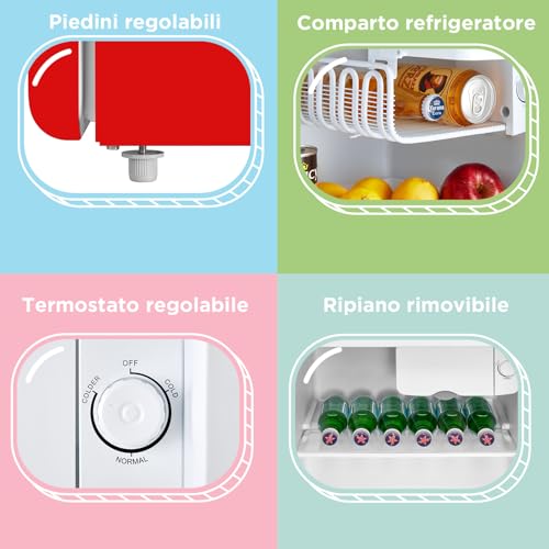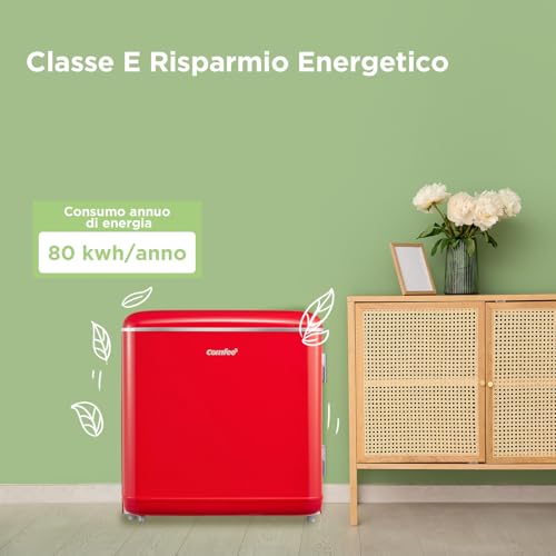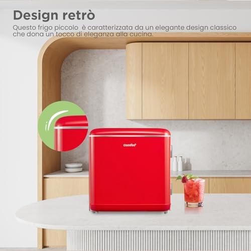 Il primo impatto con il mini frigo COMFEE' RCD50RE2EURT(E) è senza dubbio un colpo d'occhio. Il suo design retrò, ispirato agli anni '50, cattura immediatamente l'attenzione. Le linee arrotondate, la maniglia cromata a vista e le colorazioni vivaci (disponibile in rosso, bianco e nero) lo rendono un vero e proprio oggetto d'arredamento, capace di donare personalità a qualsiasi ambiente. Non è il solito elettrodomestico anonimo da nascondere, ma un pezzo da esibire con orgoglio.