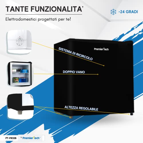 La linea di mini freezer PremierTech si presenta con un design sobrio e versatile, disponibile in diverse colorazioni (bianco, nero e silver) per adattarsi a qualsiasi ambiente. Le capacità variano principalmente tra i 31 e i 42 litri, dimensioni ideali per essere posizionati su un tavolo, sotto un piano di lavoro o persino in un ripostiglio, a patto di lasciare lo spazio necessario per l'aerazione. Questa flessibilità di installazione è uno dei loro punti di forza più evidenti.