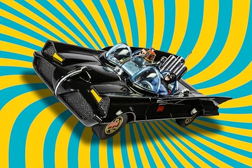 La scala del modello è 1:46, una dimensione perfetta che permette di apprezzare i numerosi dettagli senza essere eccessivamente ingombrante. Le linee della vettura, basate sulla Lincoln Futura concept car del 1955 modificata da George Barris, sono riprodotte con grande cura, catturando l'essenza futuristica e un po' "camp" che ha reso celebre l'originale televisivo. I piccoli dettagli, come i cerchioni dorati con il simbolo del pipistrello in rosso e la caratteristica "bubble canopy", sono realizzati con una precisione che farà la gioia dei puristi.
