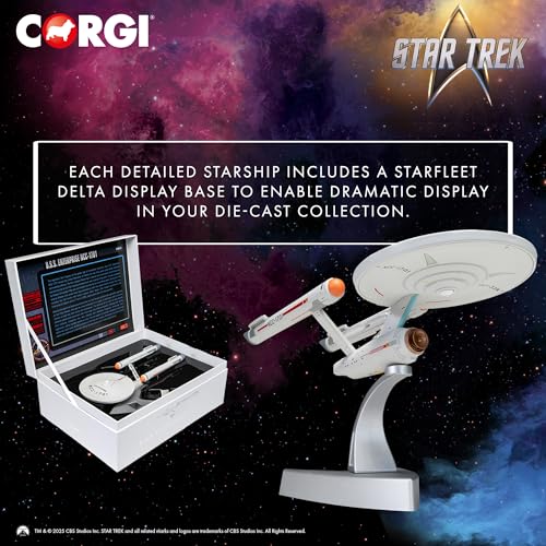 In definitiva, il Corgi Star Trek Enterprise è un prodotto che si rivolge con successo sia al collezionista esperto che all'appassionato che desidera un bel modello da esporre senza spendere una fortuna. La combinazione di metallo pressofuso e plastica offre una sensazione di solidità e un buon livello di dettaglio. Sebbene non sia esente da piccole imprecisioni o occasionali difetti di verniciatura, il risultato finale è più che soddisfacente. La qualità costruttiva generale, la robustezza dei materiali e la cura per dettagli importanti come lo stand espositivo ne fanno un pezzo consigliato. Rappresenta un ottimo compromesso, capace di portare un pezzo dell'universo di Star Trek nelle nostre case con stile e qualità.
