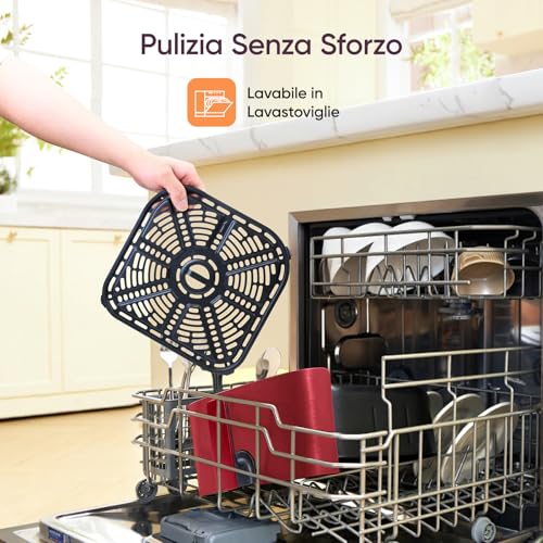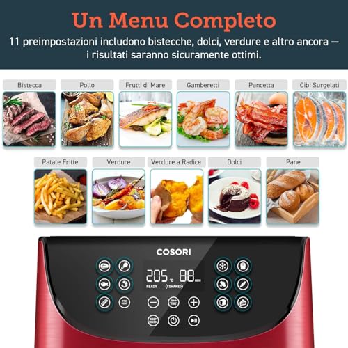 Uno dei punti di forza della COSORI CP158 è la sua incredibile facilità d'uso. Il pannello di controllo touch screen, ampio e inclinato, è molto intuitivo. Offre ben 11 programmi preimpostati per diverse tipologie di alimenti: patatine fritte, pollo, bistecca, pesce, gamberetti, bacon, verdure e persino dolci. Questo la rende perfetta anche per chi non ha molta dimestichezza in cucina. Basta selezionare il programma e la friggitrice imposta automaticamente tempo e temperatura.