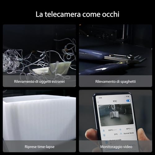 Inoltre, sebbene la webcam per il monitoraggio remoto sia un'opzione interessante, non è inclusa nel modello base ma va acquistata separatamente (a differenza del modello K1 Max).
