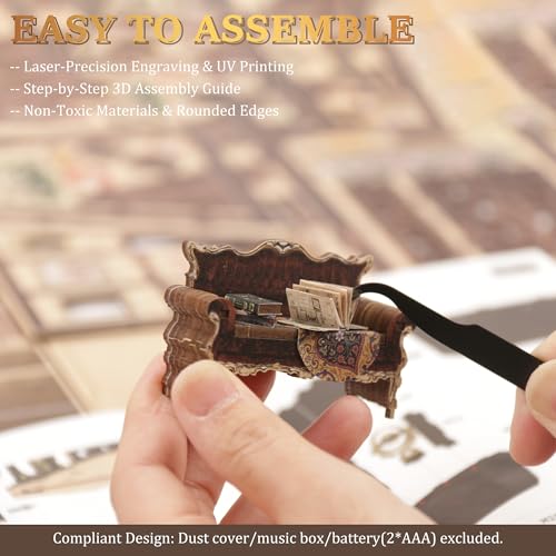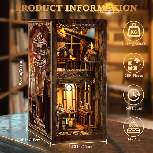 Una volta completato, il Book Nook di CRIOLPO è un vero spettacolo per gli occhi. Le dimensioni contenute (circa 18 cm di altezza) lo rendono perfetto per essere inserito in qualsiasi libreria. La precisione del taglio laser garantisce che tutti gli elementi si combinino armoniosamente. I dettagli, dai libri sugli scaffali agli arredi, sono sorprendentemente realistici e creano una scena vivida e affascinante.