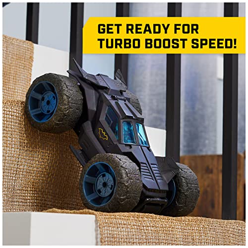 Il vero divertimento inizia quando si preme il pulsante Turbo Boost. La Batmobile scatta in avanti a una velocità sorprendente, pronta a compiere ogni tipo di acrobazia: testacoda, impennate, ribaltamenti e giri a 360 gradi. Le ruote morbide e la leggerezza del veicolo le permettono di "rimbalzare" sugli ostacoli e di rimettersi quasi sempre in assetto di guida, rendendo l'azione fluida e senza interruzioni. È un vero spasso vederla sfrecciare e capovolgersi per poi ripartire come se nulla fosse.