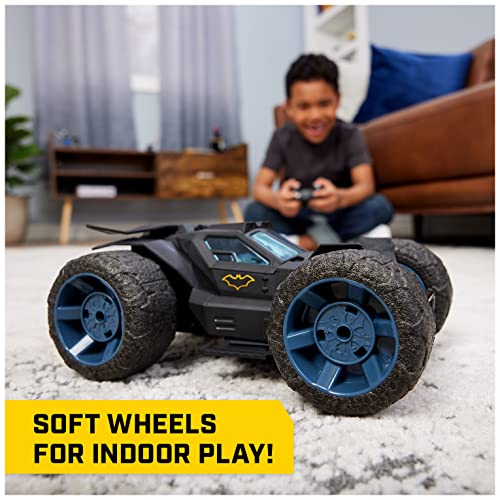 Appena tolta dalla scatola, la Stunt Force Batmobile colpisce per il suo design aggressivo, fedele allo stile dell'Uomo Pipistrello, e per una caratteristica inaspettata: la sua leggerezza. Il corpo vettura è realizzato in una plastica che sembra quasi "vuota", ma non fatevi ingannare: questa scelta è voluta per renderla agile e capace di compiere evoluzioni spettacolari. La vera star, però, sono le ruote in schiuma morbida, simili a quelle di alcuni droni. Questa soluzione è geniale per un uso casalingo: permette alla Batmobile di scontrarsi con muri e mobili senza lasciare un graffio, né su di sé né sull'arredamento. Una vera pace dei sensi per i genitori!