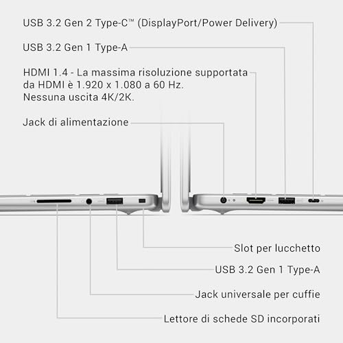 La dotazione di porte varia leggermente a seconda del modello scelto. Le versioni Intel offrono tipicamente una porta Thunderbolt 4, porte USB-A, un'uscita HDMI 1.4 e un lettore di schede microSD. I modelli Snapdragon, invece, sostituiscono la porta HDMI con una seconda porta USB4, offrendo comunque un'ottima versatilità. Per quanto riguarda la connettività wireless, troviamo il supporto per Wi-Fi 6E o addirittura Wi-Fi 7 nei modelli più recenti, e Bluetooth 5.4.