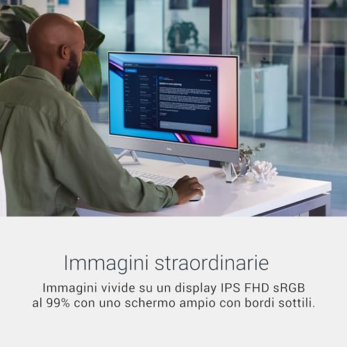 Il pannello è il cuore di ogni AIO e quello dell'Inspiron 24 è un'unità da 23.8 pollici con risoluzione Full HD (1920x1080). La qualità generale è buona, con colori vivaci e un'ottima copertura dello spazio colore sRGB (99%), che lo rende adatto non solo alla visione di film e serie TV, ma anche a lavori di fotoritocco a livello amatoriale. La finitura anti-riflesso è efficace nel ridurre i fastidiosi riflessi di luce ambientale. Alcuni critici hanno notato che la risoluzione Full HD, su una diagonale da 24 pollici, potrebbe risultare non eccezionalmente nitida per chi è abituato a schermi a più alta densità di pixel. Tuttavia, per l'uso quotidiano – navigazione web, suite Office, videochiamate – la nitidezza è più che adeguata. Esistono anche versioni con schermo touch, che aggiungono un ulteriore livello di interattività.