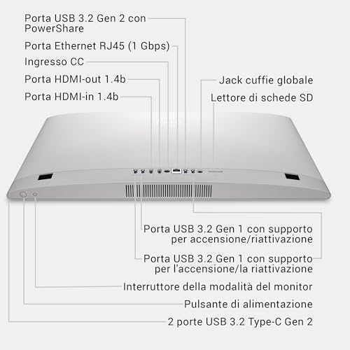 - Una porta HDMI-in, feature molto interessante che permette di usare lo schermo dell'AIO come monitor per un altro dispositivo (es. una console di gioco o un laptop)