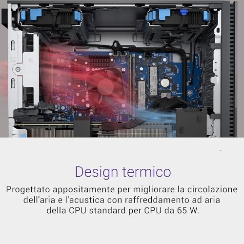 Un aspetto spesso trascurato ma fondamentale, soprattutto per chi passa molte ore davanti al PC, è la silenziosità. Grazie a un sistema di dissipazione ben progettato e a componenti a basso consumo energetico (il processore ha un TDP di 65W), questo desktop Dell è estremamente silenzioso durante il normale utilizzo. Anche sotto sforzo, le ventole si fanno sentire ma non diventano mai fastidiose, mantenendo un livello di rumorosità contenuto. L'efficienza energetica è un altro punto di forza, con certificazioni come ENERGY STAR che testimoniano un impegno verso consumi ridotti.