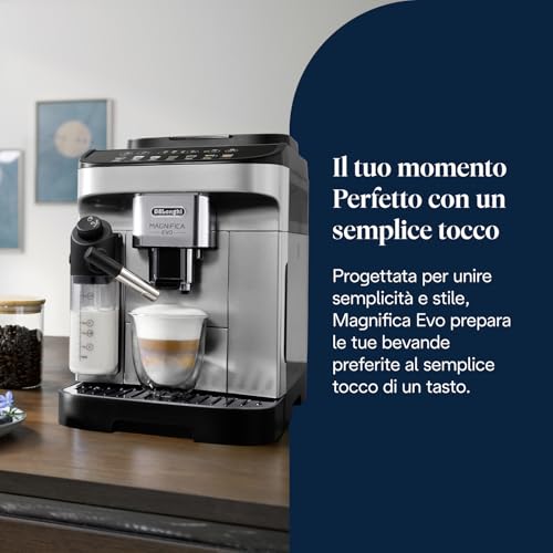 La De'Longhi Magnifica Evo è una macchina da caffè automatica che riesce a centrare l'obiettivo: offrire un'esperienza di caffè di alta qualità, simile a quella del bar, con una semplicità d'uso disarmante. È una macchina versatile, adatta sia a chi si avvicina per la prima volta al mondo delle automatiche, sia a chi cerca un prodotto affidabile e completo. Il suo punto di forza è l'equilibrio tra qualità delle bevande, facilità di utilizzo e manutenzione semplificata. Che tu scelga la versione con il pratico sistema LatteCrema o quella con la più tradizionale lancia vapore, la Magnifica Evo si dimostra un investimento intelligente per trasformare ogni pausa caffè in un piccolo, grande piacere quotidiano.