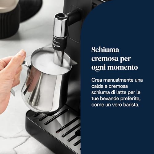 Il modello in questione è dotato di un montalatte classico a vapore (pannarello), che permette di creare manualmente una schiuma di latte densa e cremosa, proprio come al bar. Per chi cerca la massima praticità, esistono anche versioni con il sistema automatico LatteCrema Hot, che fa tutto con un solo tocco.