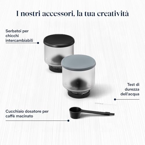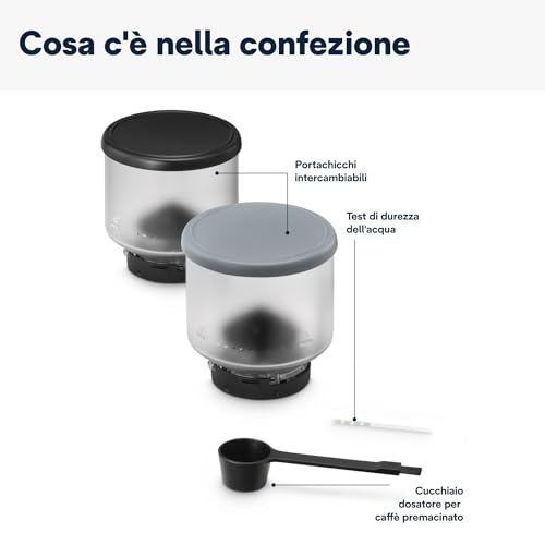 Vuoi un espresso robusto al mattino e un decaffeinato nel pomeriggio? O magari ti piace sperimentare con diverse origini di Arabica? Con la Rivelia, basta un attimo per sostituire il portachicchi e passare da una varietà all'altra. È una soluzione pratica che apre un mondo di possibilità, permettendo a ogni membro della famiglia di avere la propria miscela preferita sempre a portata di mano.